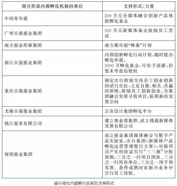 報社還規(guī)定,員工不用辭職就可創(chuàng)業(yè),報社還提供全程創(chuàng)業(yè)輔導(dǎo),管理團隊可給予期權(quán)、股權(quán)激勵。在項目籌備期間,需完成本職工作;在創(chuàng)業(yè)開始階段,報社對員工進行獨立核算、商量薪酬標準;當創(chuàng)業(yè)項目正式開始,員工就可跟報社解除勞動關(guān)系。這些比較細致的制度設(shè)計和安排,有利于在報社內(nèi)部把“孵化器”落到實處、做出實效。