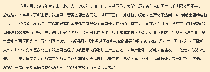 核心提示:丁輝 丁輝山東兗礦國(guó)拓科技工程有限公司董事長(zhǎng)專(zhuān)家介紹: