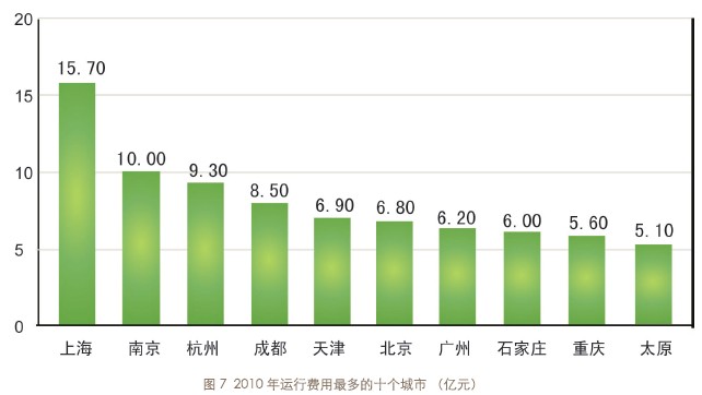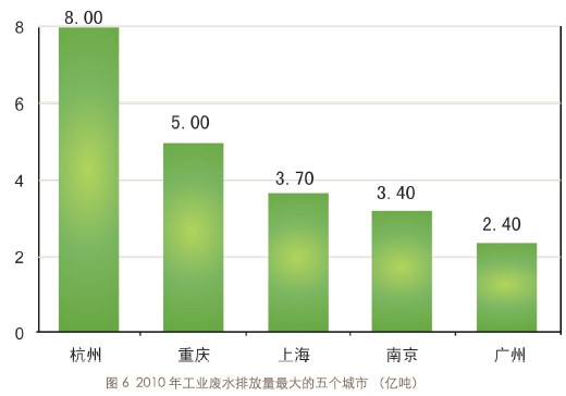 如圖7所示,在工業(yè)廢水治理方面投入最多的十大城市或是本身工業(yè)廢水排放量較大,或是為廢水再生利用而對(duì)出水水質(zhì)要求較高(如北京)。這些城市占全國(guó)投入總量的15%,是工業(yè)廢水治理的積極分子。