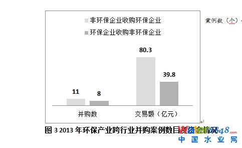 在這方面較為突出的水務和固廢行業(yè)的投資運營商(如在2013年各有4筆并購交易的桑德環(huán)境和江南水務)多通過收購地方性的環(huán)保運營企業(yè)進入?yún)^(qū)域市場,這類并購往往單個案例的交易金額不高,但是案例總數(shù)較多。