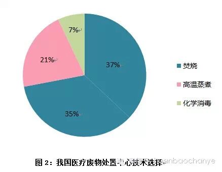 隨著國家對(duì)環(huán)境監(jiān)管力度的加大,更加嚴(yán)格、規(guī)范的醫(yī)療廢物安全處理工作勢(shì)在必行。根據(jù)環(huán)保產(chǎn)業(yè)數(shù)據(jù)庫(JIEIDatabase)不完全統(tǒng)計(jì),現(xiàn)運(yùn)行的醫(yī)療廢物處理工程主要以焚燒技術(shù)為主,占總量的71.5%,其中采用回轉(zhuǎn)窯焚燒爐及干餾熱解氣化焚燒爐技術(shù)各占半壁江山(其中干餾熱解氣化占37%,回轉(zhuǎn)窯焚燒占35%);其他方式如高溫蒸煮、化學(xué)消毒處理分別占處理量的21.4%和7.1%,處置工藝為破碎填埋和焚燒。