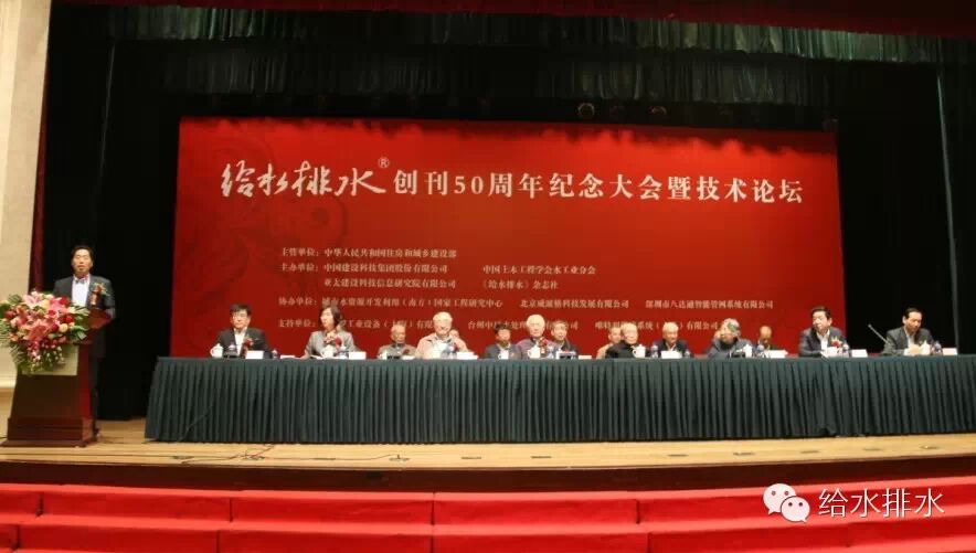 《給水排水》風(fēng)雨50載,見(jiàn)證了我國(guó)給水排水行業(yè)發(fā)展歷程。為慶祝《給水排水》50華誕,表彰為給水排水事業(yè)發(fā)展做出特殊貢獻(xiàn)的人士,在主管單位的領(lǐng)導(dǎo)下,在各主辦單位的大力支持下,《給水排水》雜志社于201410月在北京西郊賓館舉辦了“《給水排水》創(chuàng)刊50周年慶祝大會(huì)暨技術(shù)論壇”。會(huì)場(chǎng)反響熱烈,來(lái)自全國(guó)各地的參會(huì)代表們共同為《給水排水》雜志慶祝五十歲生日,并享受了一場(chǎng)業(yè)界饕餮盛宴,全場(chǎng)座無(wú)虛席。