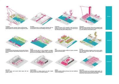 整個(gè)總體概念規(guī)劃將應(yīng)對(duì)莫斯科市的五大挑戰(zhàn)。這些挑戰(zhàn)大多可以通過(guò)重組河流與城市的關(guān)系,以及重構(gòu)河流影響區(qū)域的空間結(jié)構(gòu)來(lái)解決。這五大挑戰(zhàn)包括生態(tài)重建、交通重導(dǎo)、社會(huì)新衡、文化新生,以及經(jīng)濟(jì)復(fù)蘇。為了克服這些困難,為莫斯科創(chuàng)造一條彈性的河流,規(guī)劃共包含四大主要設(shè)計(jì)策略
