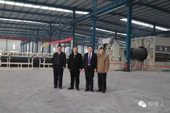 總經理王全龍與涿州國棟水務集團領導一行參觀公司生產廠區(qū)并在公司自主研發(fā)擠出機DX-2000前合影