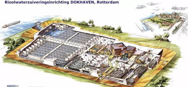蘭的Dokhaven污水廠位于荷蘭第二大城市鹿特丹的市中心,在荷蘭約350座污水處理廠中,該廠是荷蘭唯一的一座地下污水廠,只有中控室建于地上。中國城市污水處理概念廠委員會秘書處日前聯(lián)系到該污水廠所屬的水委會Waterschap Hollandse Delta(WSHD)、STOWA、 Royal HaskoningDHV的相關(guān)專家對這座著名的污水廠的地下設(shè)計進(jìn)行了分析點評。