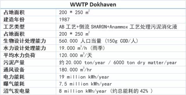 Dokhaven地下污水廠位于鹿特丹市中心新馬斯河畔(Nieuw Maas),距離中心火車站只有4公里。該廠污水處理采用AB工藝,主流段產(chǎn)生的污泥輸送到600米外的Sluisjesdijk污泥處理廠進(jìn)行厭氧消化,生成的沼氣用于熱電聯(lián)產(chǎn)(CHP),消化液采用了SHARON+ANAMMOX工藝進(jìn)行自養(yǎng)脫氮。該廠具體參數(shù)如下: