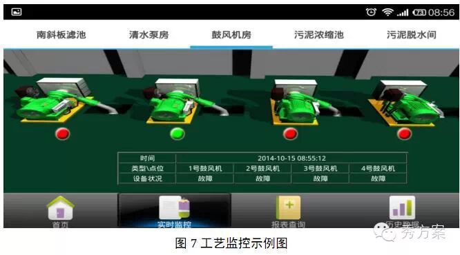 經(jīng)過XX云平臺的數(shù)據(jù)進行處理后,在該平臺上形成具有工藝監(jiān)控、報表管理、設(shè)備管理等功能的智慧水務(wù)管理系統(tǒng),提供給本廠控制中心進行使用。同時智慧水務(wù)服務(wù)云平臺還將提供移動APP應(yīng)用,便于水廠管理人員更加快捷、方便的實現(xiàn)對污水處理廠工藝運行情況的查看。