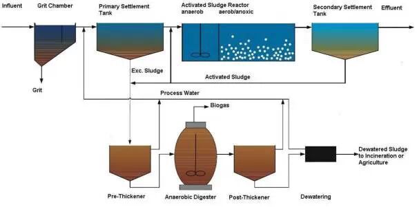 初沉池的污泥和二沉池的剩余污泥一般都會采用中溫厭氧消化和機械脫水處理。脫水后的污泥將被焚燒或者用在農(nóng)業(yè)以及景觀工程等方面。