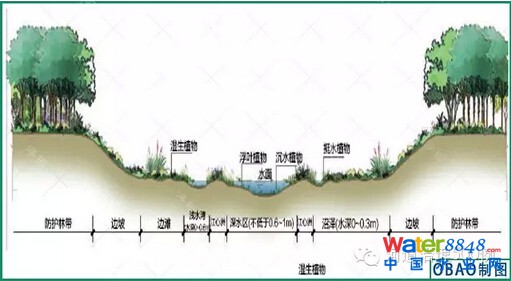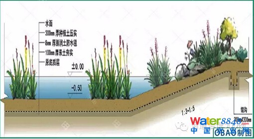 為節(jié)約水資源,在子槽河底及常水位以下部位采取必要的擬自然防滲措施。擬自然防滲采用有微滲功能的膨潤土防水毯材料,其與PE膜等其他防水材料相比,對河流生態(tài)系統(tǒng)與地下的物質(zhì)和能量交換的影響相對較小。為確保汛期雨水和上游來水迅速下滲,補(bǔ)充地下水,在非重點區(qū)域不作減滲處理,不進(jìn)行補(bǔ)水,以減少水量消耗。
