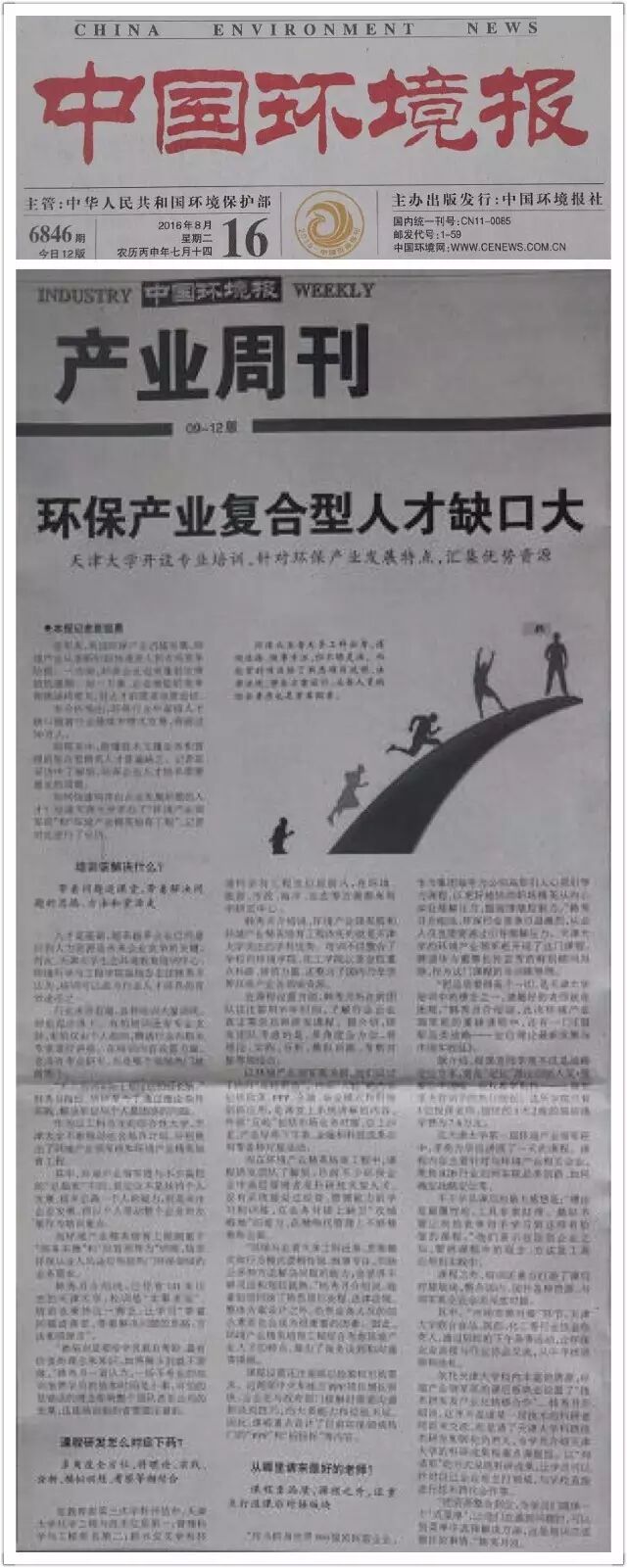 中國環(huán)境報對天津大學(xué)《環(huán)境產(chǎn)業(yè)領(lǐng)軍班》的報道
