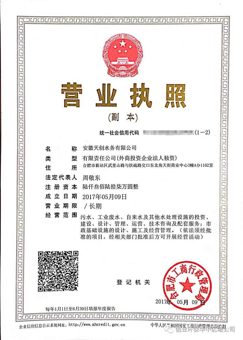 核心提示:熱烈祝賀安徽天創(chuàng)水務(wù)有限公司正式成立! 創(chuàng)業(yè)環(huán)保華中區(qū)域公司
