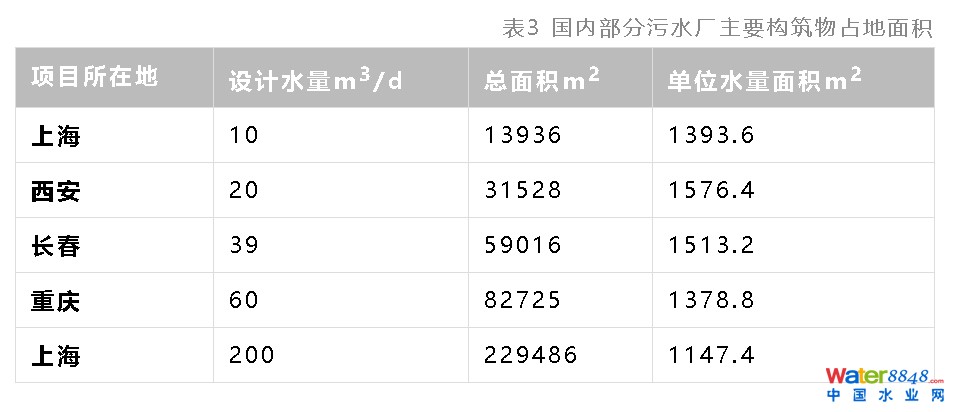 光伏發(fā)電可回收的能量多少主要取決于可用于安裝光伏板的面積大小。對于污水處理廠來說,各個處理單元的頂部均可用于光伏板的安裝,且面積較為可觀。為了解我國污水處理廠設(shè)計規(guī)范下可用的光伏板安裝面積,我們總結(jié)了處理規(guī)模不同的污水處理廠部分單元構(gòu)筑物的面積,如表3所示?芍,我國污水處理廠處理單位萬噸污水對應(yīng)的主要構(gòu)筑物的平面面積在1147~1576 m2之間,平均值為1402 m2。由于規(guī)模效應(yīng)的存在,這一數(shù)值是隨著處理水量的增大而減少的。