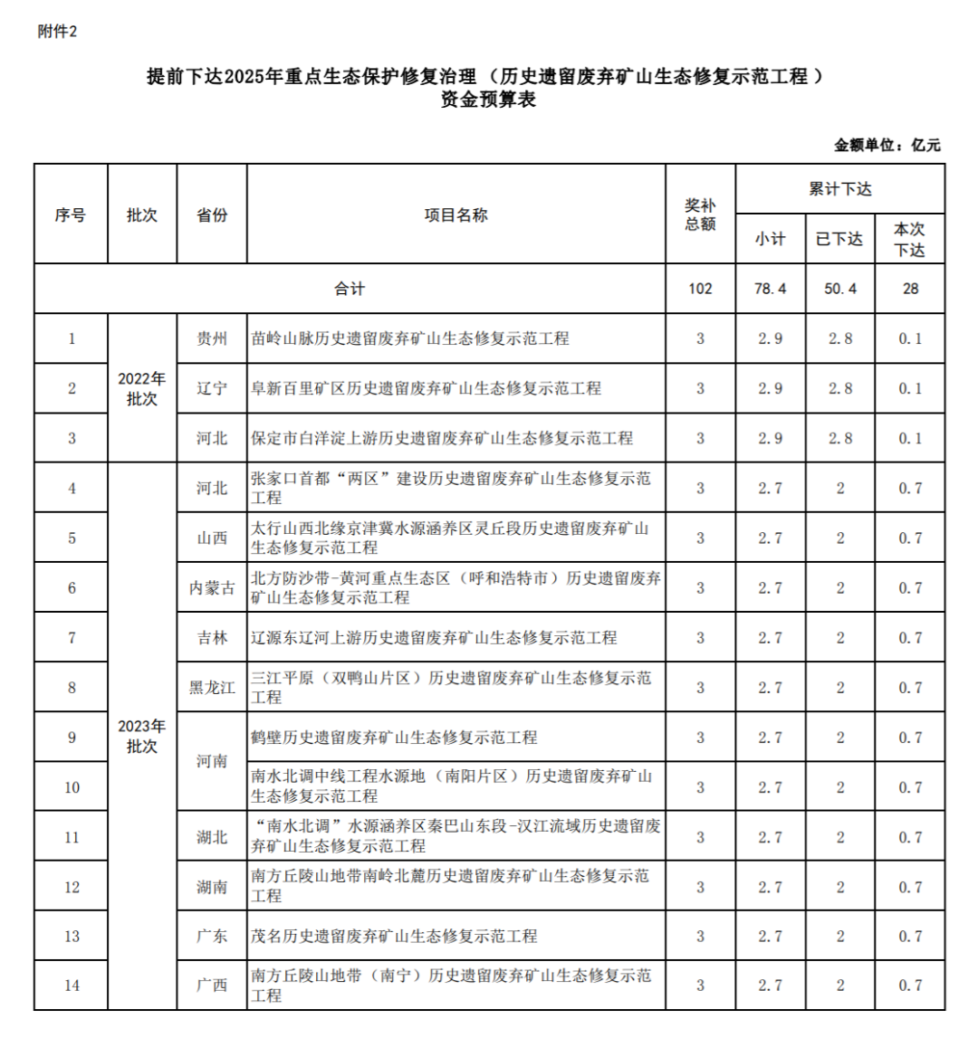 財(cái)政部關(guān)于提前下達(dá)2025年重點(diǎn)生態(tài)保護(hù)修復(fù)治理資金預(yù)算的通知
