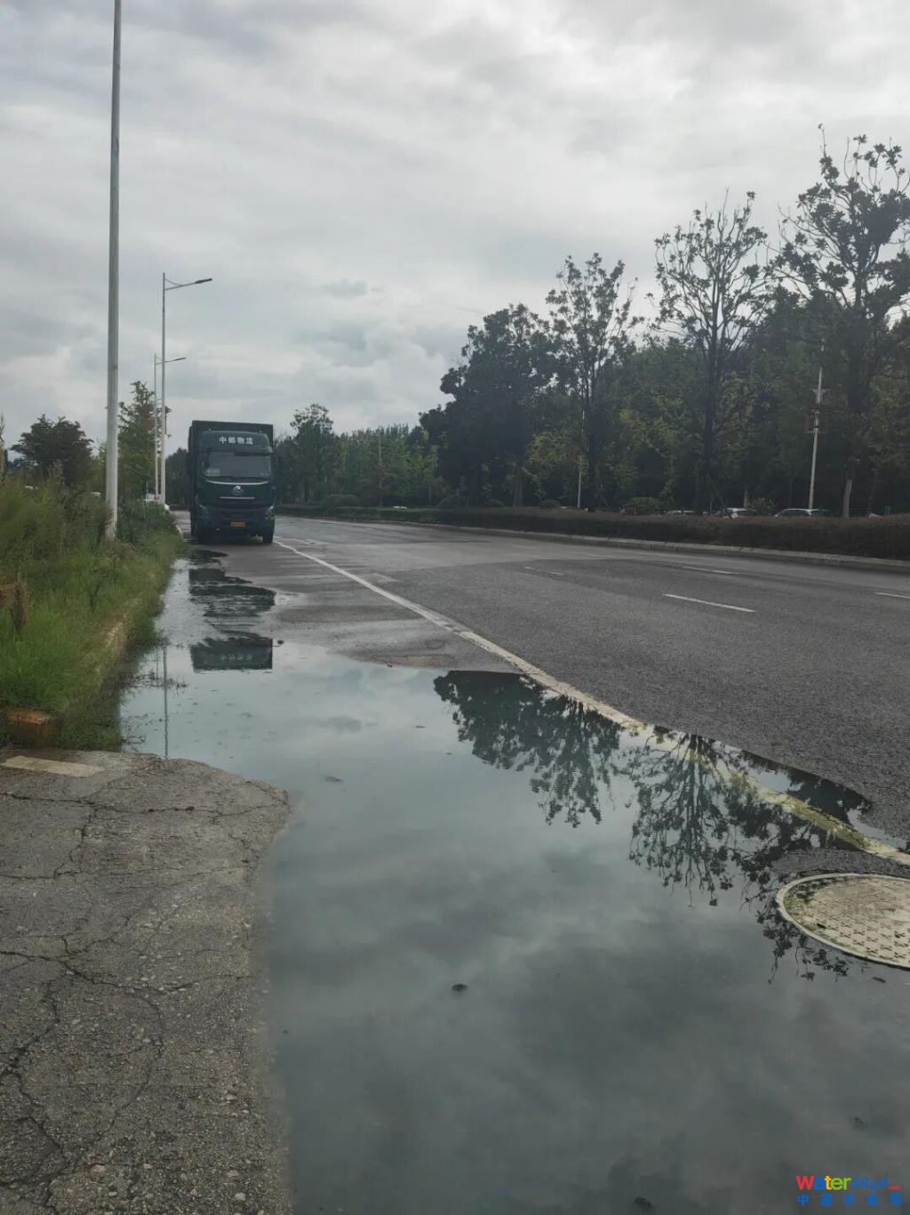 △開發(fā)大道融創(chuàng)城潯樾小區(qū)路段污水橫流。