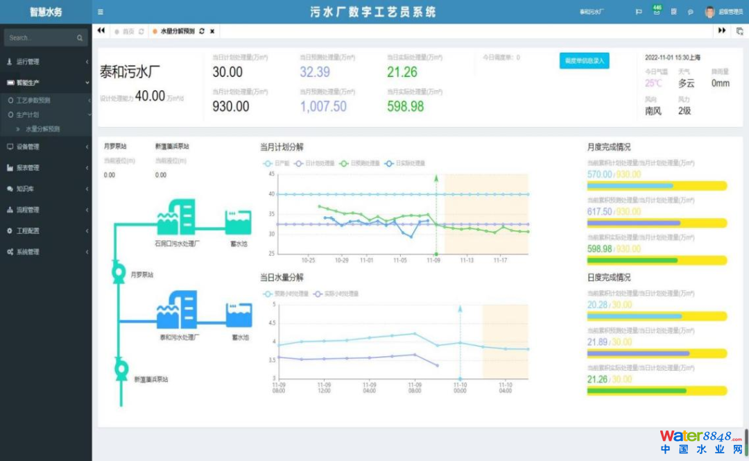 本項(xiàng)目基于污水處理廠高質(zhì)量轉(zhuǎn)型需求,總體目標(biāo)是融合機(jī)理算法和機(jī)器學(xué)習(xí)算法,建立用于管控工藝生產(chǎn)的數(shù)字工藝員系統(tǒng),形成24小時(shí)在崗的虛擬工藝員,以便對(duì)污水廠工藝生產(chǎn)進(jìn)行全天候不間斷的精細(xì)化自主調(diào)控,同時(shí)對(duì)于支撐污水處理高效運(yùn)行的設(shè)備管理和安全管理工作進(jìn)行有針對(duì)性的智慧化升級(jí)。
