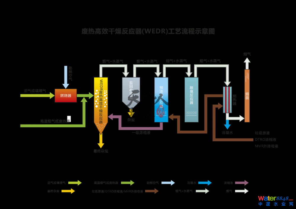 簡稱WEDR技術(shù),是一種可利用高溫?zé)煔、沼氣、天然氣等清潔能源的干燥技術(shù)。具有適用性強(qiáng)、產(chǎn)生殘?jiān)佟⒄嫉孛娣e省、運(yùn)行成本低、系統(tǒng)運(yùn)營穩(wěn)等特點(diǎn),可專門用于滲濾液全量化處理、濃縮液全量化處理、MVR母液處理、高鹽廢水全量化處理。